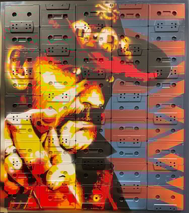 Artiste pop art spécialisé dans les portraits sur cassette audio recyclées